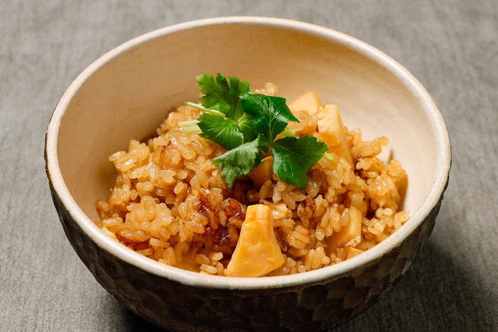 【たけのこのほうじ茶香る炊き込みご飯 】
