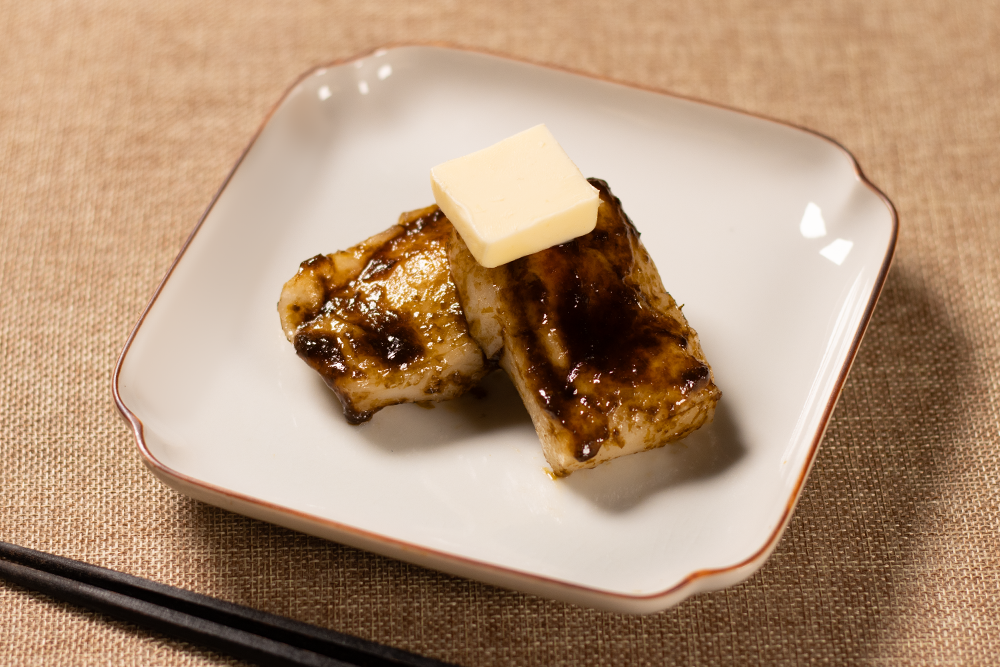 1.熱したフライパンにバター10gを入れて溶けてきたら「こがね餅」を加え、ふたをして両面約2~3分ずつ加熱する。 2.1に「のりバター」を絡めてから器に盛り、バターをのせる。